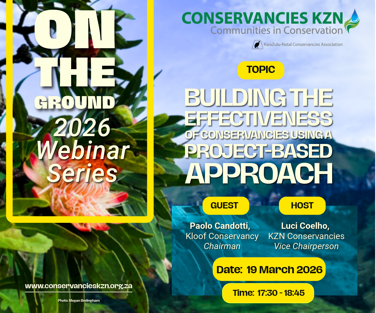 Join us for the first KZN Conservancies webinar in the series, On The Ground, on 19 March 2026 at 17:30. The link will be available here shortly and will also be published on our Facebook page